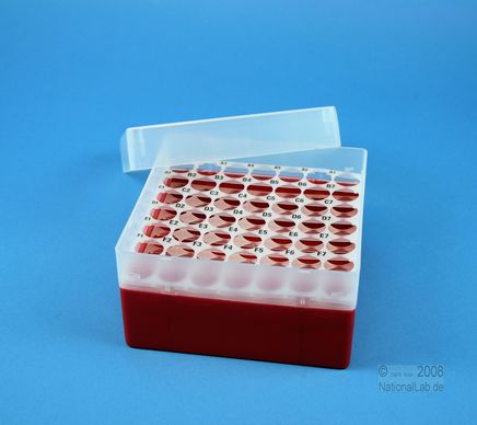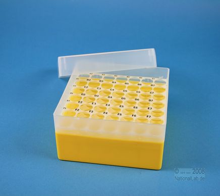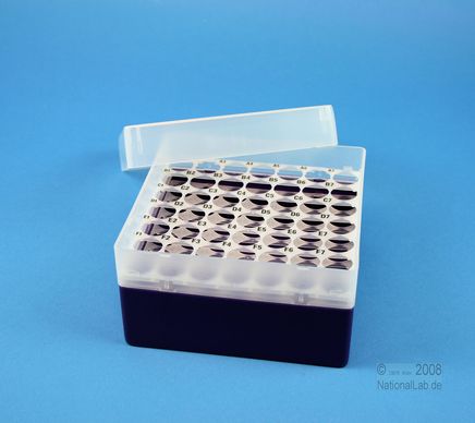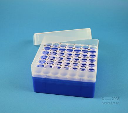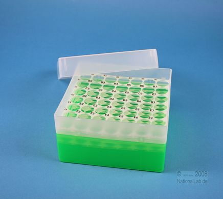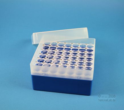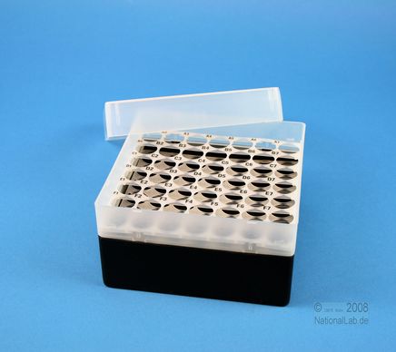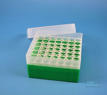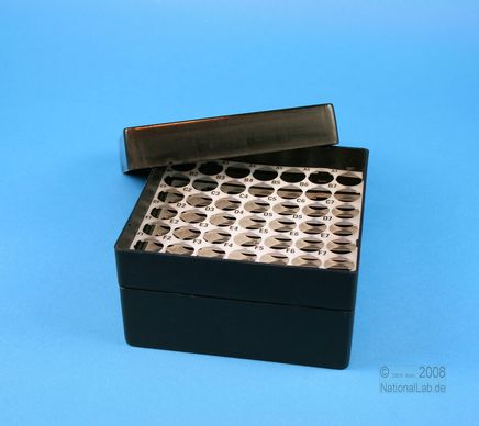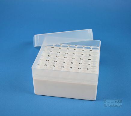 EPPi® Box 80 / 7x7 Löcher, Höhe 80 mm fixEPPi® Box 80 / 7x7 Löcher, Höhe 80 mm fix. Innenhöhe 77 mm. 7x7 Löcher für 49 Röhrchen bis 16,5 mm Ø. Mit alpha-numerischer Codierung an den Löchern, PP.