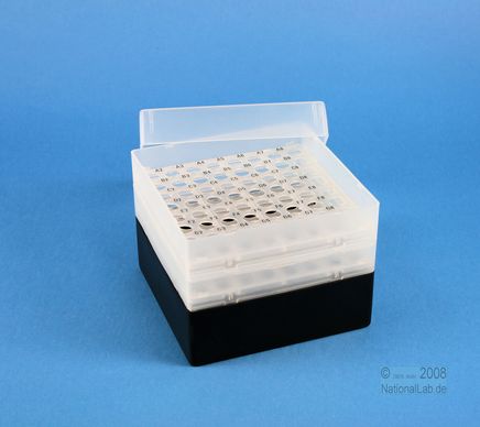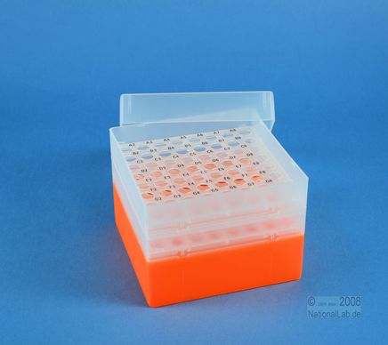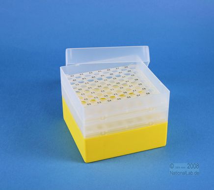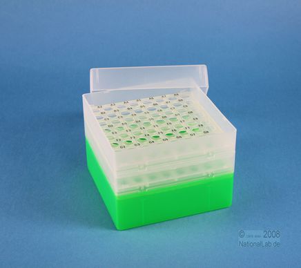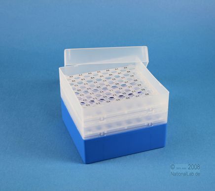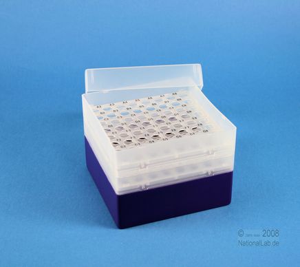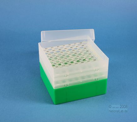 EPPi® Box 105 / 8x8 Löcher, Höhe 105 mm fixEPPi® Box 105 / 8x8 Löcher, Höhe 105 mm fix. Innenhöhe 103 mm. 8x8 Löcher für 64 Röhrchen bis 11 mm Ø. Mit alpha-numerischer Codierung an den Löchern, PP.