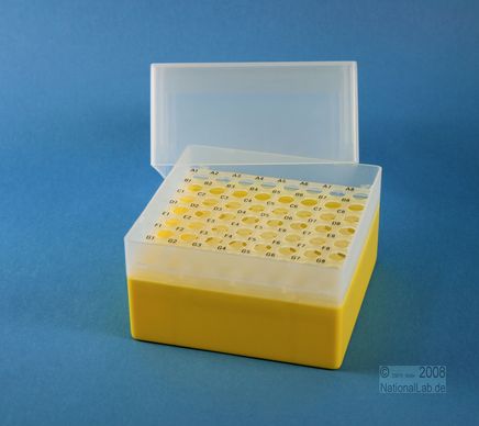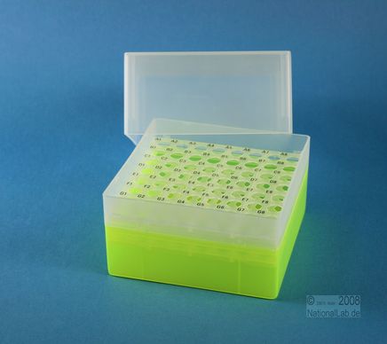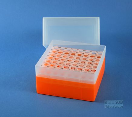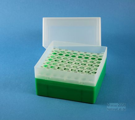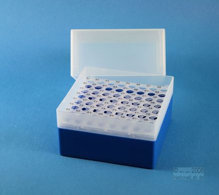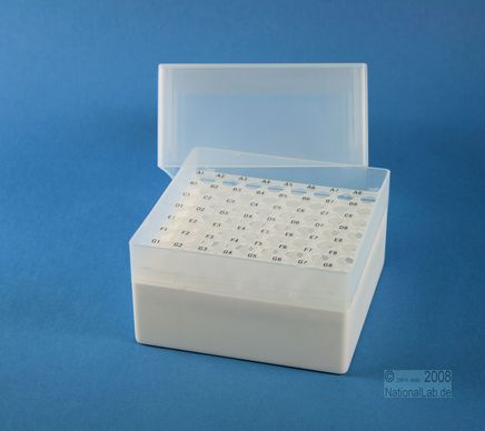 EPPi® Box 122 / 8x8 Löcher, Höhe 122 mm fixEPPi® Box 122 / 8x8 Löcher, Höhe 122 mm fix. Innenhöhe 118 mm. 8x8 Löcher für 64 Röhrchen bis 11 mm Ø. Mit alpha-numerischer Codierung an den Löchern, PP.