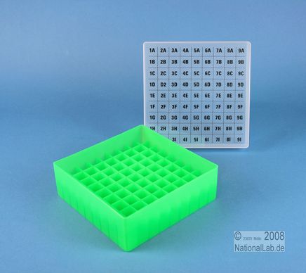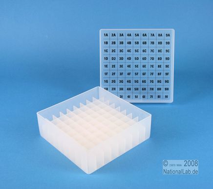 EPPi® Box 45 / 9x9 Fächer, Höhe 45-53 mm variabelEPPi® Box 45 / 9x9 Fächer, Höhe 45-53 mm variabel. 9x9 Fächer für 81 Röhrchen bis 12,5 mm Ø. Mit alpha-numerischer Fachcodierung auf dem Deckel, PP. (Siehe auch KEH50).