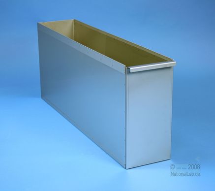 ALPHA Schrankkästen, einfache Breite (142 mm), Edelstahl, oben offen, Griffkante Mit gleichen Außenmaßen wie Schrankgestelle. Ideal zum Kombinieren mit Schrankgestellen und Schrankeinschüben.