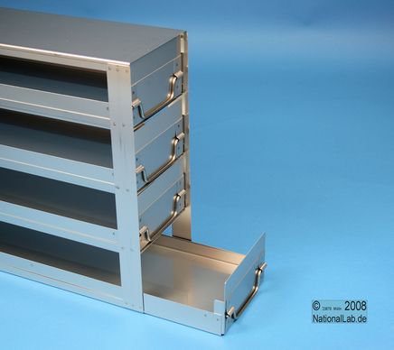BRAVO 75 Schrankeinschübe für alle Boxen bis 133x133x78 mm, Edelstahl, offene Bauform, Klappgriff, mit Auszugstop, Böden der Schubladen geschlossen, Front geschlossen