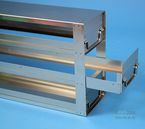 BRAVO 75 Schrankeinschübe für alle Boxen bis 133x133x78 mm, Edelstahl, offene Bauform, Klappgriff, ohne Auszugstop, Böden der Schubladen offen. Erleichtert das Herausnehmen und Einsetzen. Front geschlossen