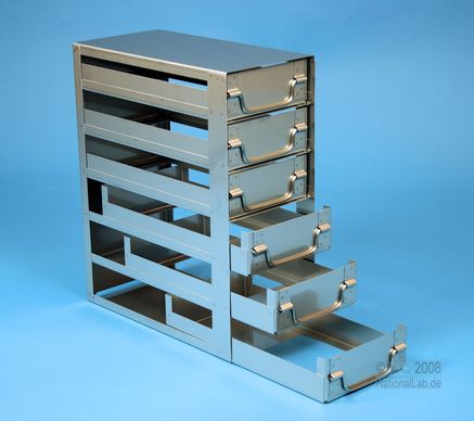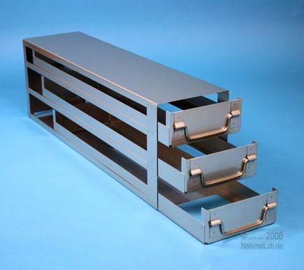EPPi® 45 + 50 Schrankeinschübe für alle Boxen bis 133x133x53 mm, Edelstahl, offene Bauform, Klappgriff, mit Auszugstop, Böden der Schubladen offen. Erleichtert das Herausnehmen und Einsetzen. Front geschlossen