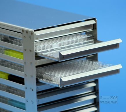 Mikrotiter Schrankeinschübe für Mikrotiterplatten bis 86x128x18 mm, offene Bauform, ohne Auszugstop