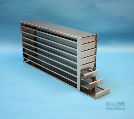 | Microtiter Drawer Racks for Microtiter Plates up to 86x128x39 mm, Stainless steel, Open Design, Grip Rail, without Safety Stop, Base of drawer closed |
