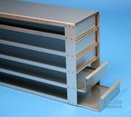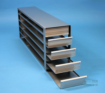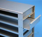 Mikrotiter Schrankeinschübe für Mikrotiterplatten bis 86x128x45 mm, Edelstahl, offene Bauform, Griffleiste, mit Auszugstop, Böden der Schubladen geschlossen