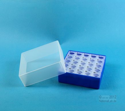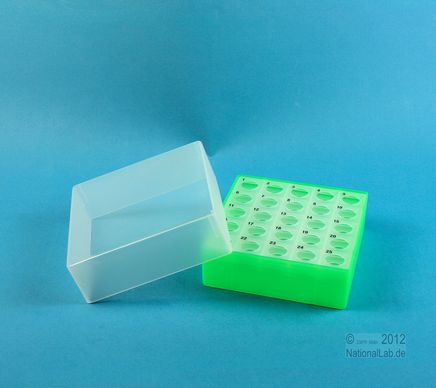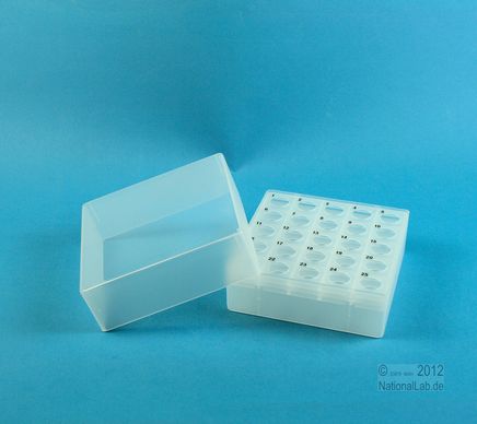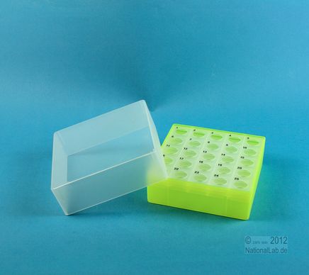 EPPi® Box 67 / 5x5 Löcher, Höhe 67 mm fixEPPi® Box 67 / 5x5 Löcher. Höhe 67 mm fix. Innenhöhe 64 mm. Für 25 Röhrchen bis 17 mm Ø. Numerische Fachcodierung (1-25) auf Locheinsatz, PP
